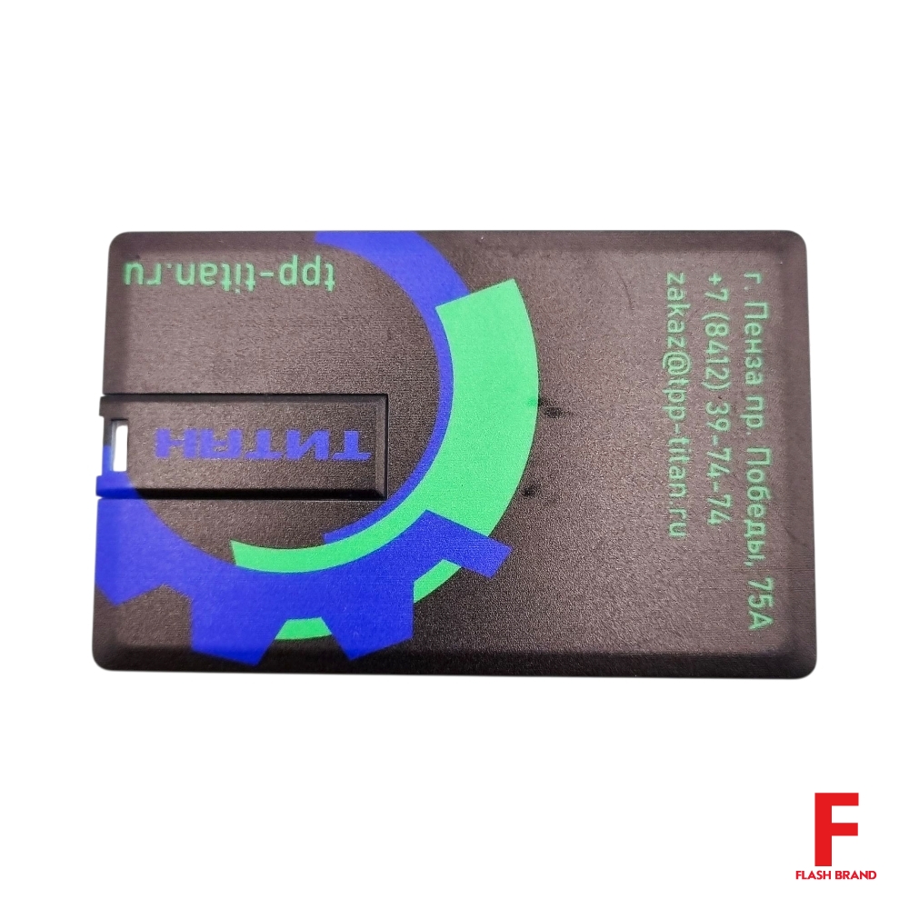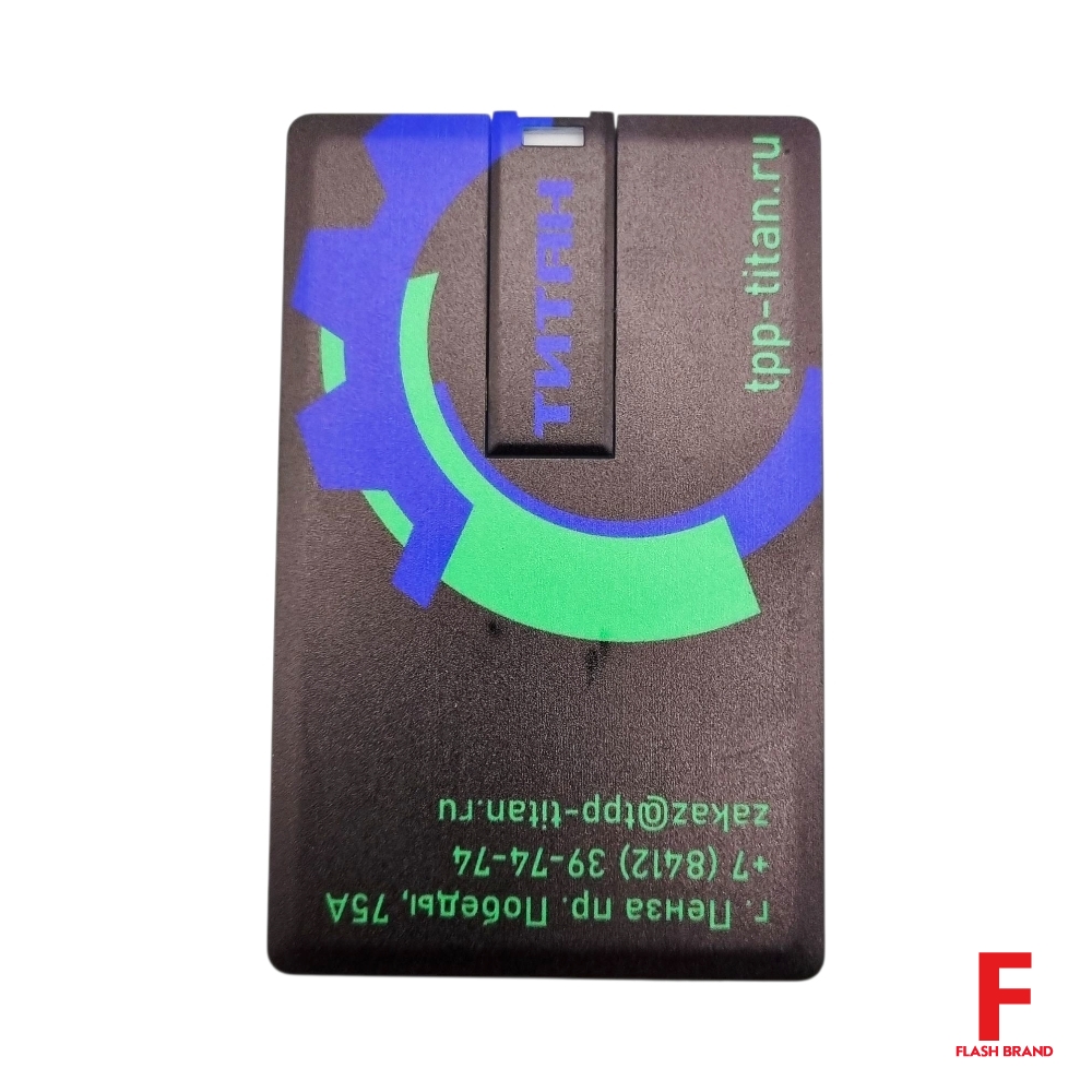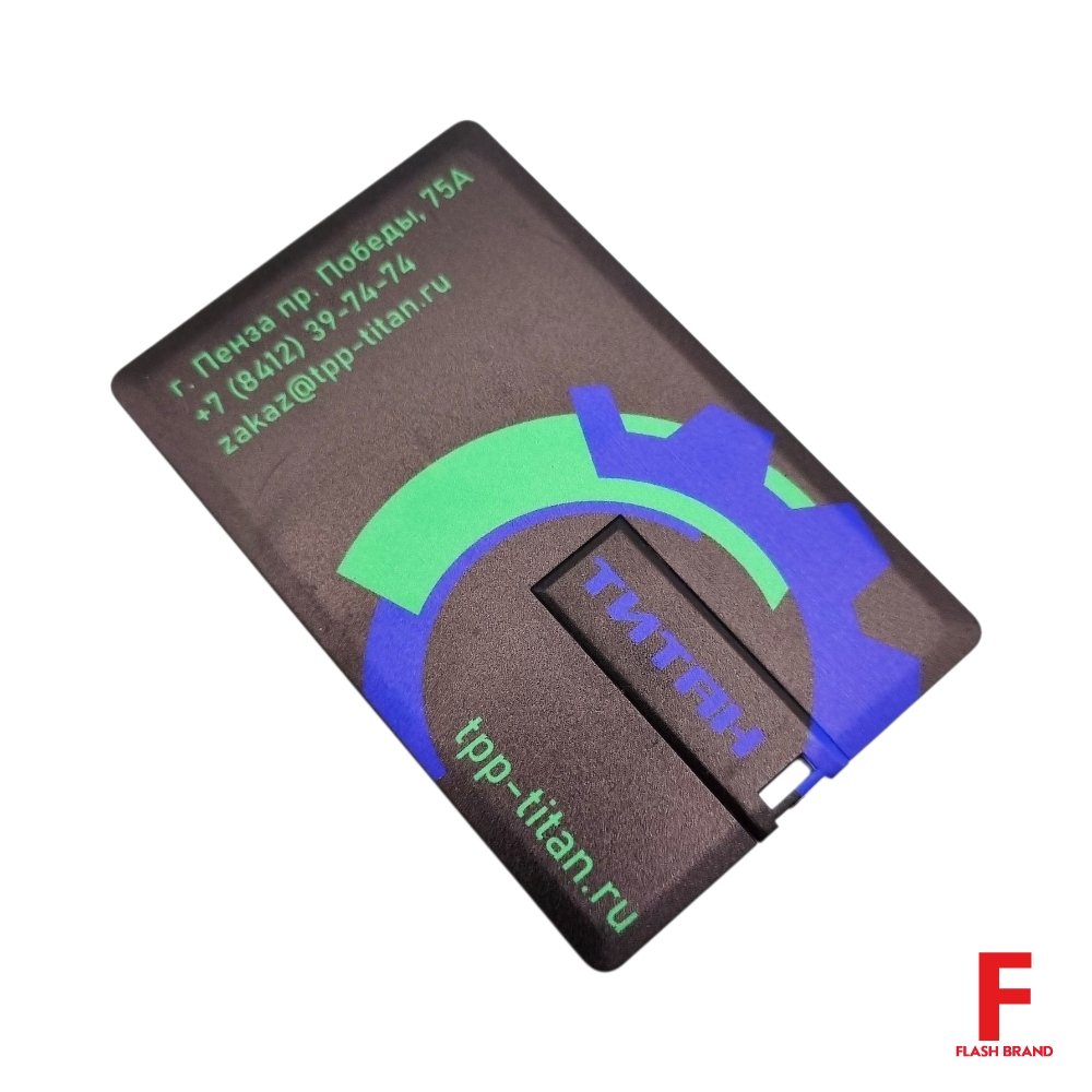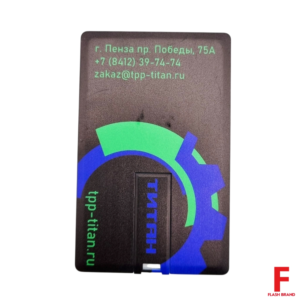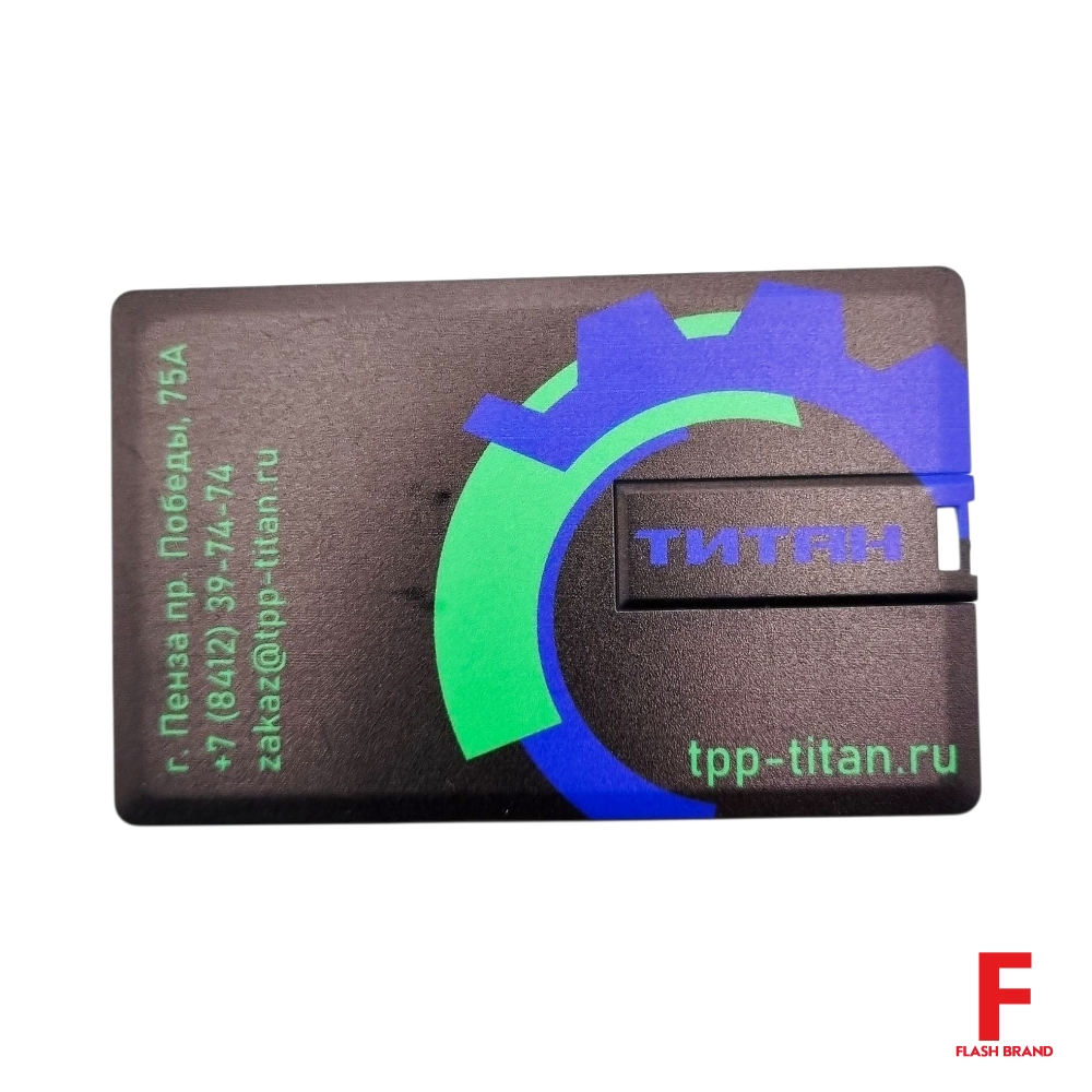 Титан - Флешка Пластиковая Визитка "Visit Card" S78 черный, уф-печать 4+4