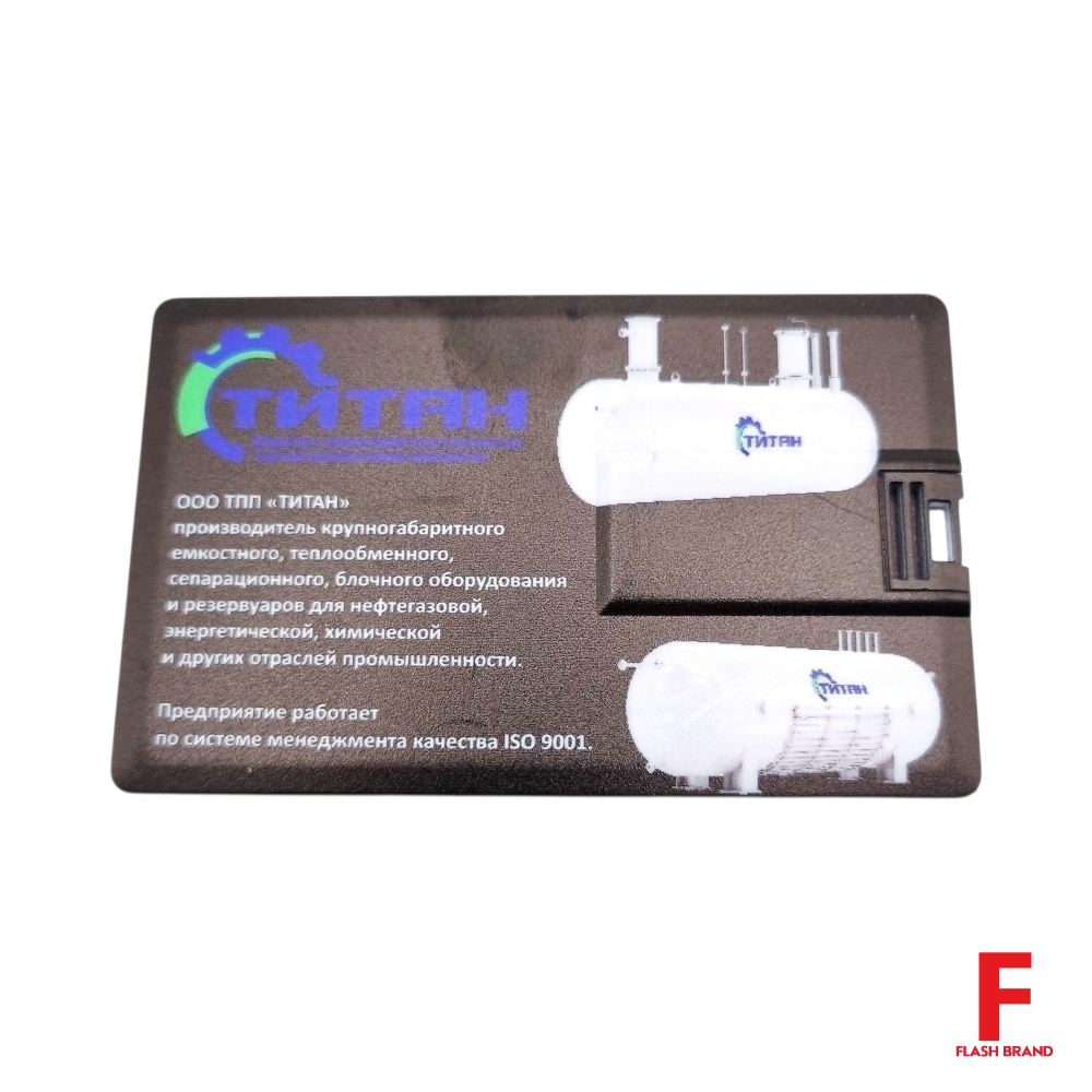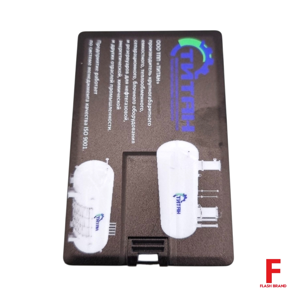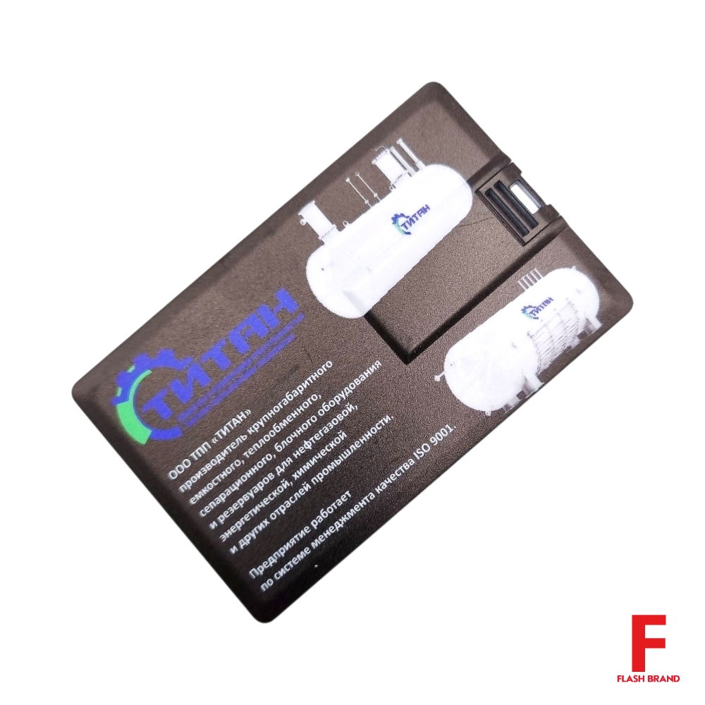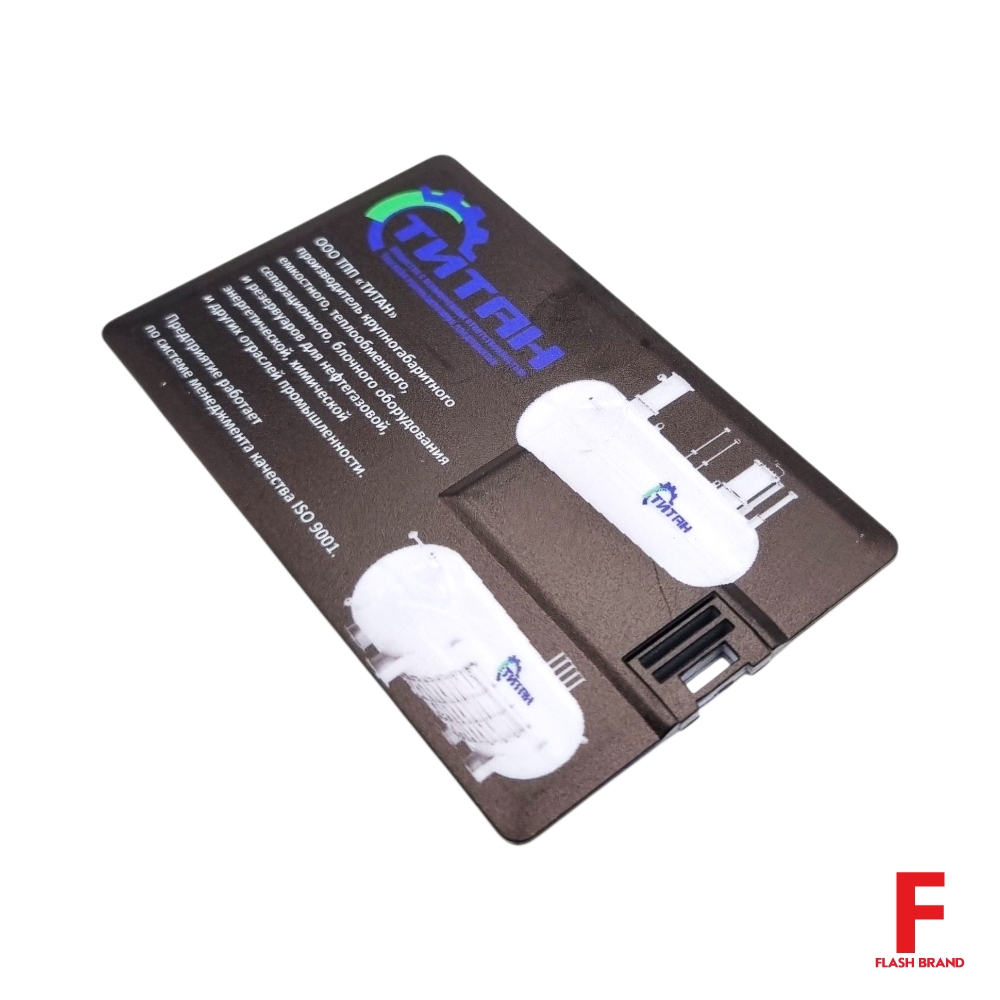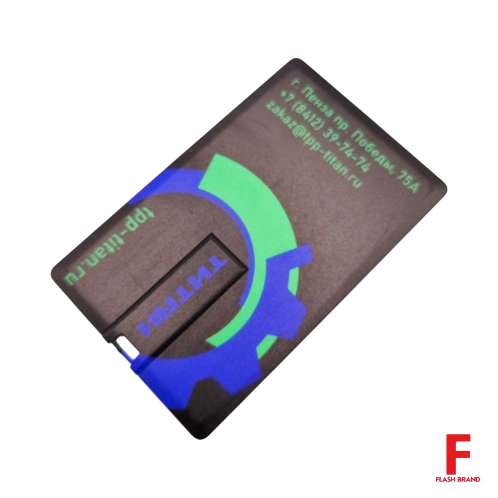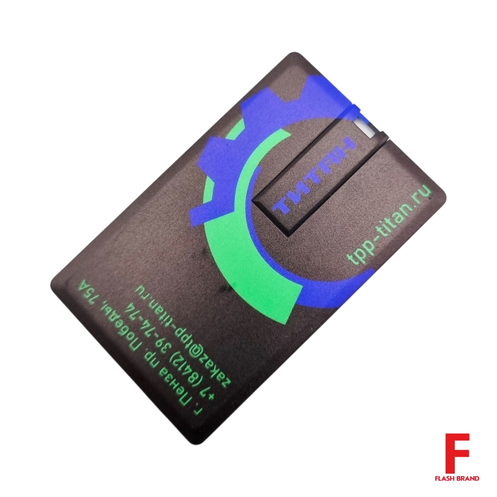 Титан - Флешка Пластиковая Визитка "Visit Card" S78 черный, уф-печать 4+4