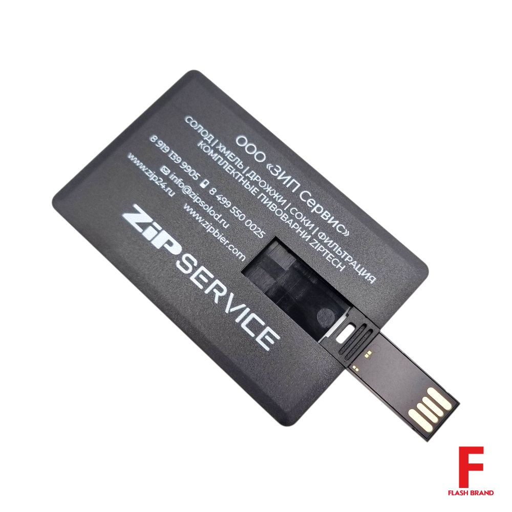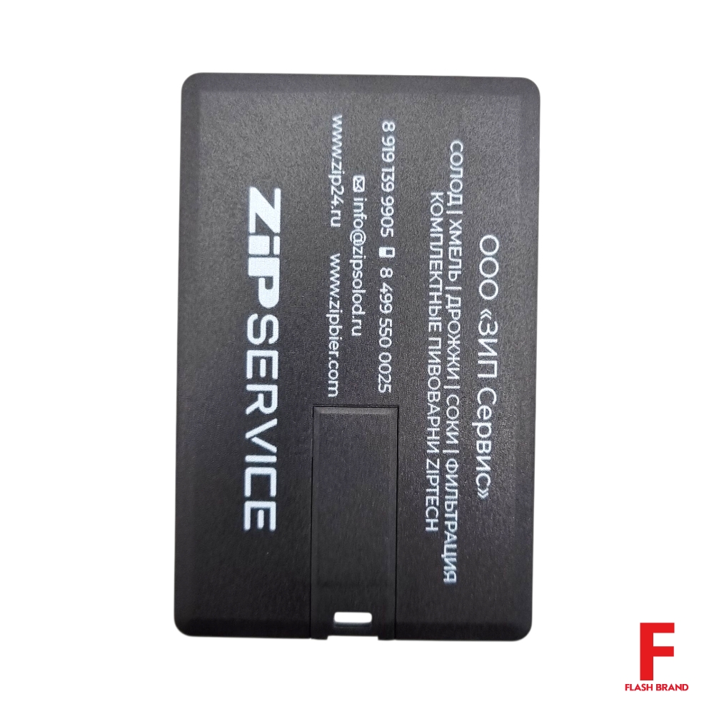 ZIP Service - Флешка Пластиковая Визитка "Visit Card" S78 черная, уф-печать 1+1, белила